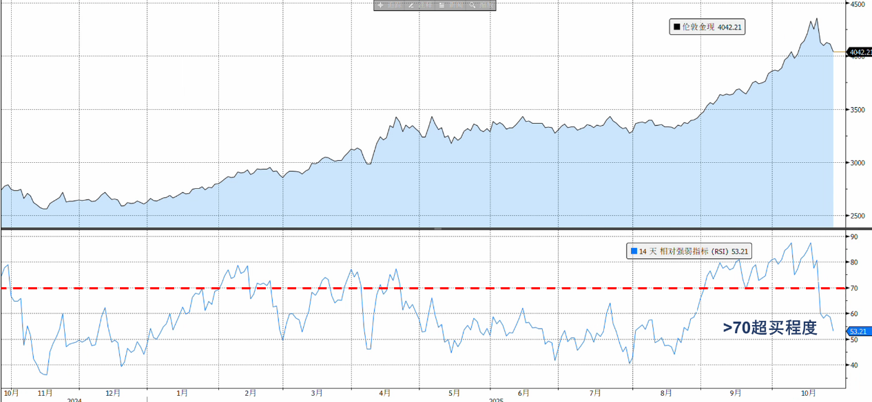 本频道在10月16日《黄金继续强势突破,意味着什么?》一文中提示,“当前黄金处于交易极度拥挤的超买阶段,市场指标和情绪似乎都在说明现阶段的黄金也在吹泡沫…现在黄金的价格是否真的偏贵?短期内是否会有调整的风险?”,“在短期内,美联储将继续支持流动性,黄金仍有上行空间,但要注意短期的调整风险;而中长期来看,随着黄金从避险资产转向制度性抵押品与全球货币体系中性资产,黄金价格中枢将持续上移。”